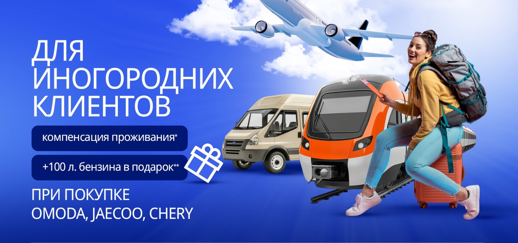 Специальное предложение от Агат-Авто - при покупке любого нового автомобиля OMODA, JAECOO и Chery в нашем автосалоне Агат-Авто по адресу: г. Иркутск, ул. Трактовая, 22А мы компенсируем стоимость проживания и проезда для иногородних клиентов*.